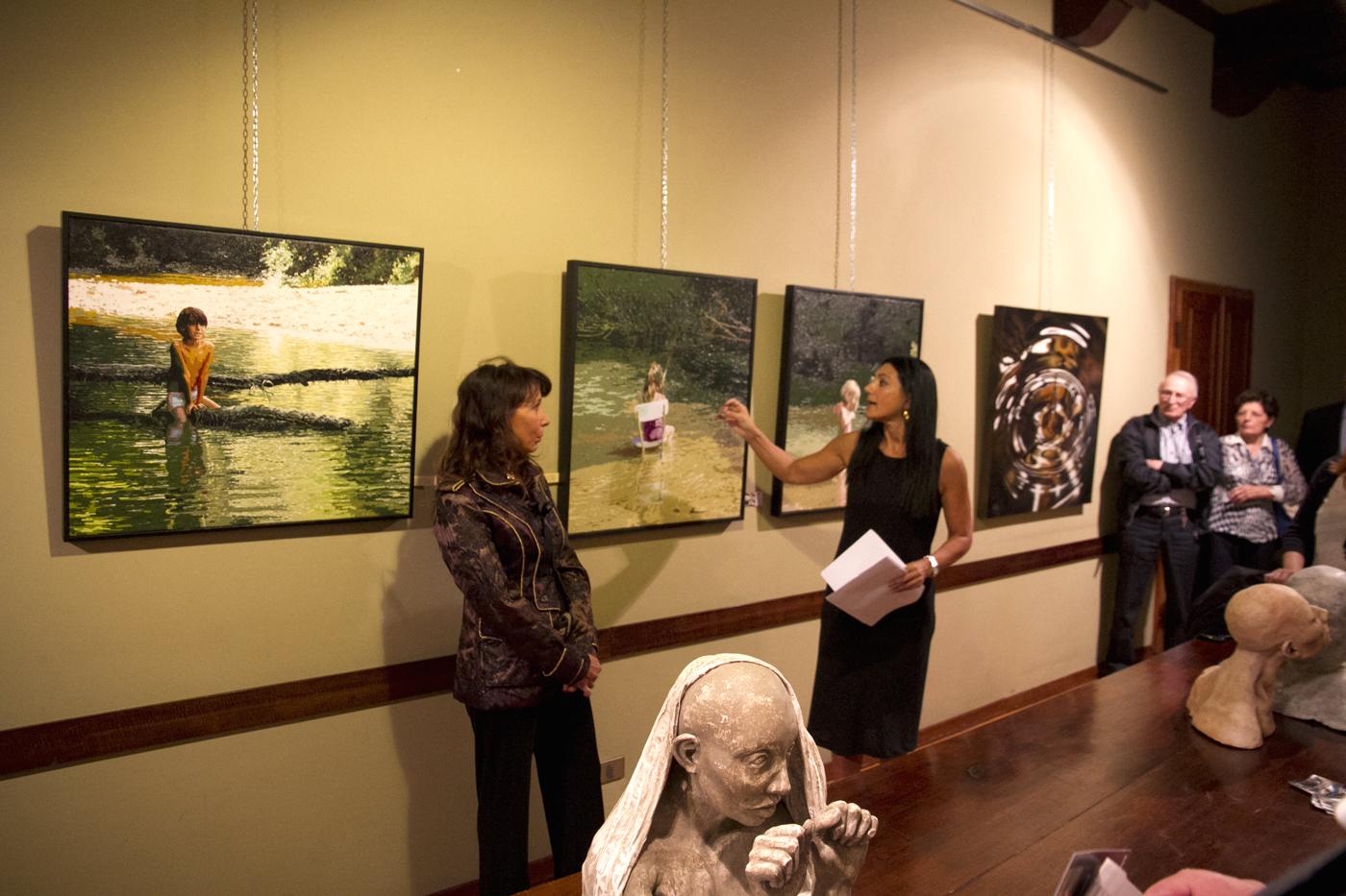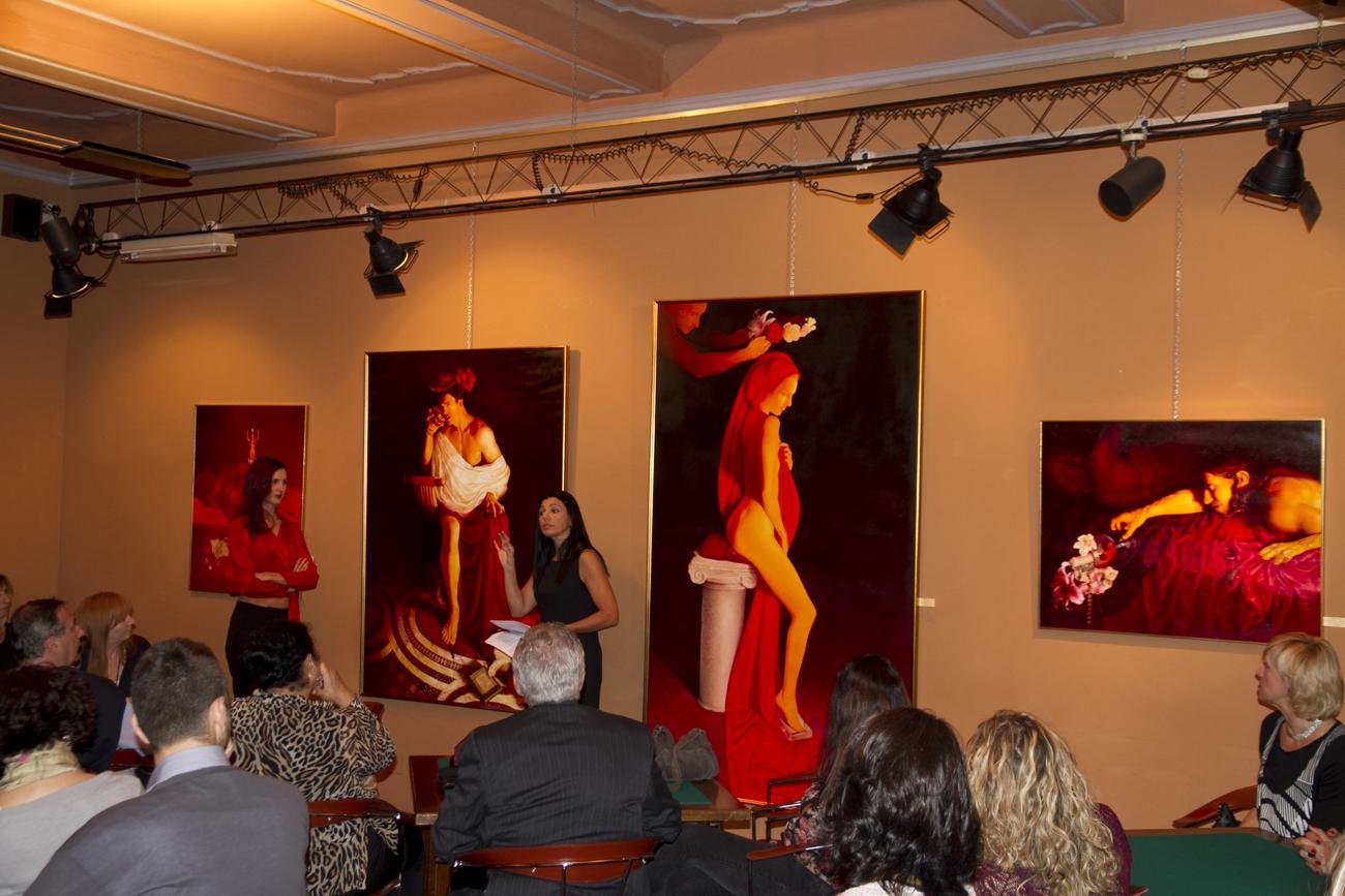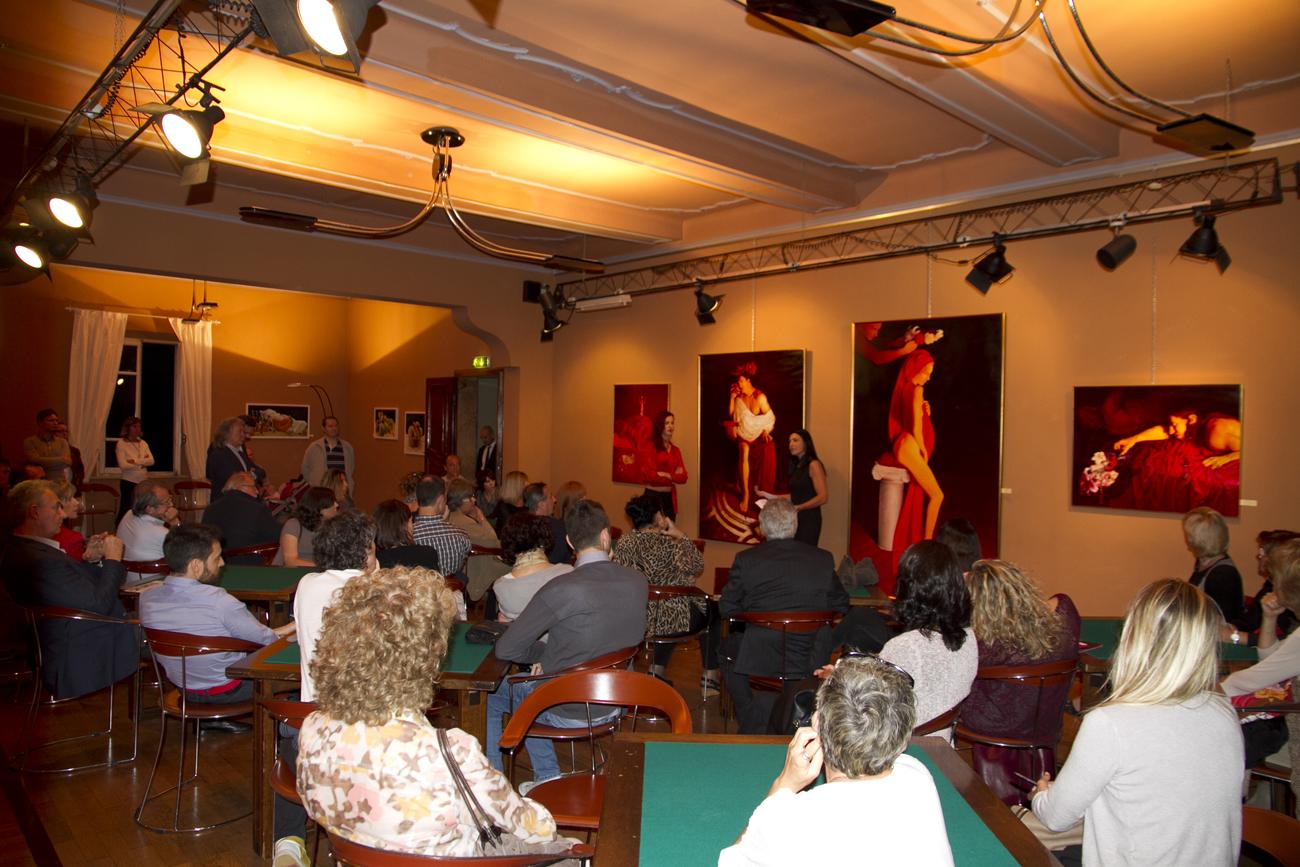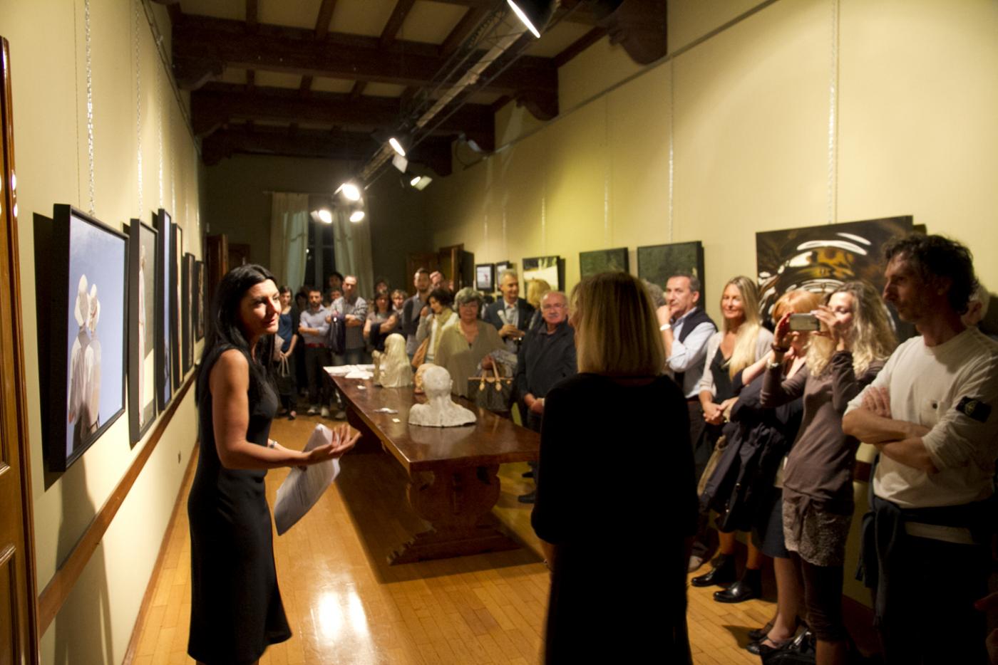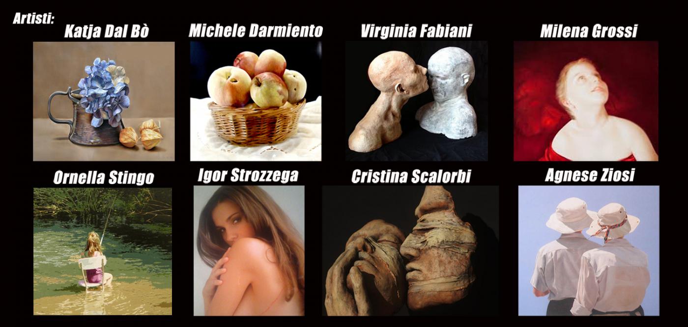 Otto sono i bravissimi pittori e scultori provenienti da tutta Italia che espongono: Katja Dal Bò è nata in Svizzera poi trasferitasi con la famiglia ha vissuto per molti anni in provincia di Treviso. Si è diplomata al Liceo e laureata in Lingue e Letterature Straniere a Ca’ Foscari, Venezia. Poi si è trasferita a Belluno dove attualmente risiede. La sua passione per l'arte è iniziata nel 2008 dall’incontro con l’artista Rhut Maldonado Tinoco che le ha insegnato il disegno a matita. Poi la pittura ad olio appresa durante i vari corsi all'Accademia di Belle Arti di Venezia è diventata la tecnica più congeniale per la sua arte. Il giovane pittore Michele Darmiento è originario di Bari ma si è trasferito a Parma diversi anni per diplomarsi al Liceo Artistico "Paolo Toschi". Grazie alla sua alta qualità pittorica ha partecipato a numerosi concorsi d'arte vincendo spesso il primo premio e ha eseguito dipinti su commissione per diversi personaggi famosi tra i quali Gene Gnocchi e l'attore Vin Diesel. Molte sue opere sono presenti in chiese e palazzi storici oltre che in collezioni private. Di sua mano è la pala raffigurante l'Annunciazione nella chiesa di San Michele Arcangelo a Parma. La scultrice Virginia Fabiani è originaria di Pontedera in provincia di Pisa. Diplomata al Liceo Artistico Statale di Lucca e successivamente all’Accademia di Belle Arti di Carrara prima sotto la guida del prof. Franco Mauro Franchi e poi con lo scultore Aron Demetz. La sua passione per la scultura l’ha portata ad iscriversi anche all’Accademia di Belle Arti di Venezia sotto la guida del prof. Giuseppe La Bruna. Le sue opere rappresentano la reazione dell’essere umano oppresso e limitato dalla società contemporanea. Milena Grossi nasce a Rimini e già da piccola è attratta dall'arte. Le vicende giovanili e gli studi la conducono verso la scuola per stilisti e inizia così a viaggiare tra Milano e Parigi. In seguito si avvicina alla pittura e sarà la sua fede religiosa a darle la forza di continuare, diventando con soggetti biblici, il tema principale delle sue grandi tele. Saranno poi gli insegnamenti del maestro Fernando Gualtieri a perfezionare la sua tecnica. Nella sua potente pittura vi è l´utilizzo preponderante del rosso, per lei colore della vita, del sangue che scorre nelle vene, colore che raccoglie sogni, dolori, sentimenti. La scultrice bolognese Cristina Scalorbi vive a Vado in provincia di Bologna ed è diplomata maestra d’arte. Predilige la terracotta e le sue opere raffigurano volti espressivi dai quali emerge emozione e sentimento. I suoi busti trasmettono il pathos e il dolore dell'essere umano, il tormento, la dura forza dell’inquietudine, il disfacimento della bellezza, le fenditure e gli squarci dell’anima. I volti modellati con la tecnica raku, evidenziano, anche tramite le diffuse screpolature della cottura, la turbata presenza dell’assenza. Ha partecipato a numerosi concorsi di scultura aggiudicandosi spesso il primo premio sia in Italia che all'estero. Ornella Stingo figlia d'arte del pittore napoletano Ugo Stingo è nata a Rovigo. Artista versatile si muove agevolmente anche in settori come scultura, vetrofania, incisione. Lo stile iperrealista che predilige le consente di realizzare dipinti a livello fotografico e di riprodurre fedelmente quadri di qualsiasi artista. La ricerca decennale sulla ritrattistica la ripaga con il consenso di personalità come Philippe Daverio, Roberto Baggio, Lucio Dalla solo per citare alcuni dei suoi clienti. Ha esposto alla 54° Biennale di Venezia, Padiglione Italia a Torino invitata personalmente da Vittorio Sgarbi. Igor Strozzega è torinese di nascita e noneso di adozione. Si è diplomato all'Accademia di Belle Arti di Venezia sotto la guida di Omar Galliani. Con pennello e tavolozza riproduce su tela immagini talmente perfette che sembrano fotografie. Dal 1995 ha esposto in numerose mostre collettive e personali. Dal museo dell’Accademia di Belle Arti di Venezia alla Galleria d’arte Fedrizzi di Cles (Trento), dal Palazzo della Provincia Autonoma di Trento fino a Parigi in Francia presso il museo del Cafè d’Orsay. Agnese Ziosi dal 1972 risiede a Cento di Ferrara. Fin da bambina era appassionata d’arte e ha frequentato la scuola di figurinista a Bologna, poi si è formata tecnicamente sotto la guida di vari maestri pittori tra i quali Nicola Nannini. In pittura utilizza i colori ad olio prediligendo il figurativo e la natura morta. La sua passione per l'arte l'ha portata ad approfondire anche la tecnica della ceramica, il restauro e la scultura. Ha partecipato a mostre personali, collettive e a concorsi d’arte aggiudicandosi spesso i premi principali.