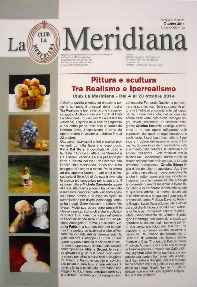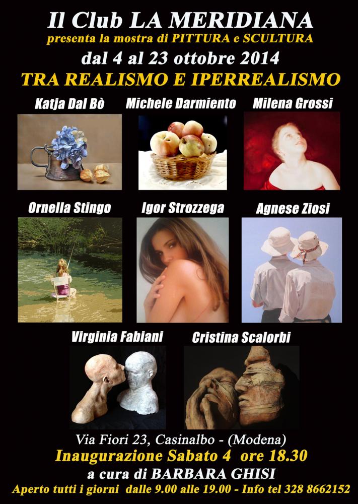 Altissima qualità pittorica ed emozione sono le componenti principali della mostra Tra Realismo e Iperrealismo che inaugurerà sabato 4 ottobre alle ore 18.30 al Club La Meridiana, in via Fiori 23 a Casinalbo (Modena). Ospitata nelle sale dell'ingresso e del primo piano della villa e curata da Barbara Ghisi, l'esposizione di circa 50 opere resterà in visione al pubblico fino al 23 ottobre.