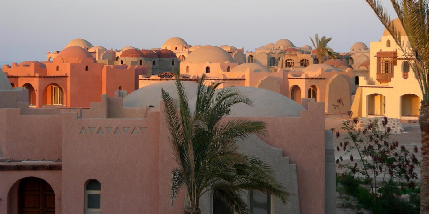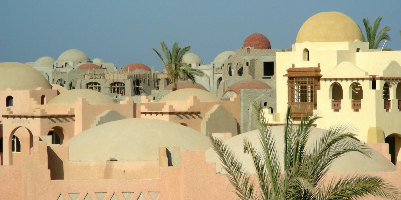 Sfumature turchesi e blu, sfumature oro, gialle, ocra e beige. Il tutto si fonde nella terra egiziana affacciata sul mare orientale.