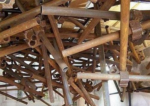 Davanti ad una struttura instabile, composta da una massa ferrosa arrugginita di finti tubi innocenti e di giunti (realizzati in realtà con cartoni e polistirolo), intrecciati e sospesi con sottilissimi fili di nylon, avvertiamo un forte senso di straniamento e di precarietà immanente. Anche in questo installazione, come in altre di Ignazio Fresu, lo spazio che viene creato non è solo quello architettonico, ma anche un ambiente mentale che conduce lo spettatore a rifettere sulla natura complessa del reale, creando un gioco continuo di rimandi che da un piano intimo e privato rinvia ad uno pubblico e potenzialmente condiviso per poi tornare di nuovo a quello intimo.