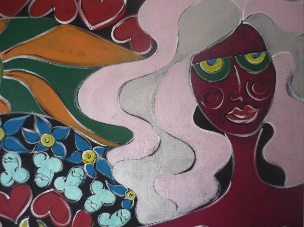 Senza troppa introspezione v’è piuttosto una tendenza a far vivere direttamente il sentimento, la passione, il cuore. Cuore che prende tutto lo spazio possibile, accanto ai sorrisi, alla realtà floreale, come per riportare verso