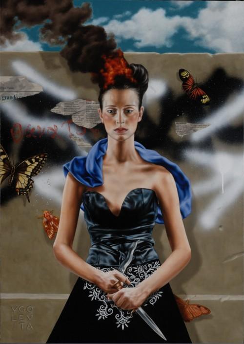 Napoletano verace, ma trapiantato in Umbria, Ugo Levita è pittore che unisce il "cervello", fervido d'immaginazione fremente, all'abilità pittorica, quel virtuosismo di cui s'è perso oggigiorno il gusto, la sfida, il senso, la bellezza, la necessità. Al trucco scoperto delle avanguardie epigoniche tutto stupore e ferocia, non di Kandinskij, Pascali, Klee, Burri, Duchamp, Pollock, Manzoni, Fontana..., Levita oppone una pittura di fantasie e di sogni, di incubi e di miti, di simboli e di miracoli, il tutto in un intrico di piani e di flash back, di commistioni e di intarsi. Un mondo il suo pieno di misteri e di narrazioni circolari, dove lo spazio e il tempo si trovano in somma sintonia, dentro la storia audace e onirica dell'utopia, in un universo di figure trasfigurate e di corpi o volti che non sai se più umani o più angelici. Una pittura di sterminata felicità, nonostante la realtà.