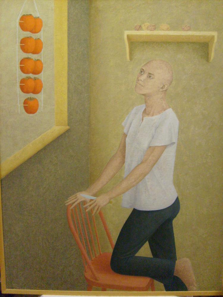 “Una pittura che racconta storie senza bisogno di parole, che solidifica le figura e gli oggetti delimitando lo spazio con i gesti tra le figure e la relazione tra i personaggi e gli oggetti che occupano il loto ambiente: questa plasticità austera mi ha ricordato l’emozione di entrare negli ambienti affrescati da Giotto ad Assisi, dove le figure non parlano ma il loro dialogo è fatto di sguardi muti e muti silenzi. Eppure la narrazione c’è.