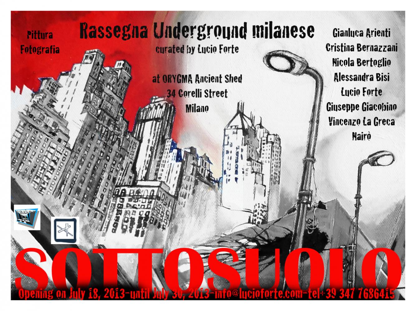 Milano, via Corelli, il giorno Giovedì 18 Luglio si inaugura la mostra dal titolo "Sottosuolo", uno spaccato underground milanese, con pittori e fotografi impegnati nella ricerca e nella sperimentazione. La mostra curata da Lucio Forte comprende le opere di: Gianluca Arienti, Cristina Bernazzani, Nicola Bertoglio, Alessandra Bisi, Lucio Forte, Giuseppe Giacobino, Vincenzo La Greca e Nairò.