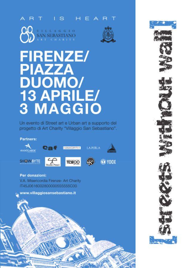 I vari appuntamenti, dislocati nella città di Firenze, prenderanno avvio con una straordinaria e inedita azione, su scala urbana e sviluppo macroscopico, dell’artista milanese Bros sulla facciata del Palazzo della Misericordia, in Piazza Duomo, mentre nel periodo compreso tra il 13 e il 23 aprile verrà inscenata una grande sessione di painting dal vivo, a cui potranno assistere spettatori e passanti, dove saranno coinvolti alcuni tra i più importanti nomi dell’urban art internazionale, fra cui M-City dalla Polonia, Dome dalla Germania, TvBoy da Barcellona, Etnik e Smart di Firenze, Dado & Stefy di Bologna, Ozmo, El Gato Chimney, Santy e Luze di Milano, chiamati per l’occasione ad esprimere la propria creatività, secondo le differenti tipologie di stile e linguaggio.