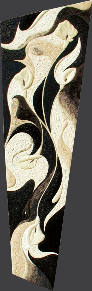 " Le note si richiamano per simpatia e dissonanza ricostruendo la trama sottile di un gioco in cui la temporalità musicale trascende nella dinamizzazione ed elaborazione dello spazio. Le immagini costruite da Maria Cristina Neviani si affermano attraverso molteplici suggestioni in cui legami e antitesi convergono a completare il tempo totale dell'opera: nel quadro tutto è simultaneo, la propria identità appare come un decorso temporale che trattiene il respiro. La sua sintesi consiste allora nel commutare ogni principio formale nella struttura dell'unità determinata dai vari momenti del dipinto. La concezione di una dimensione assoluta ulteriormente sottolineata dall'uso di pigmenti luminescenti che intrappolano la luce e ne rilasciano al buio gli effetti:il quadro vive così di due momenti distinti, a loro volta suddivisi e sbriciolati in istanti successivi infiniti attraverso i quali lo scheletro dell'immagine rivela la propria anima confondendosi con la sostanza della materia. Ogni porzione, ogni aspetto dell'opera diviene la punteggiatura necessaria per riuscire ad intendere l'intera scrittura artistica che, nell'impermanenza dei propri confini, diviene il plurale di sé medesima, in una convergenza e stratificazione formale manifestata come principio identitario. "