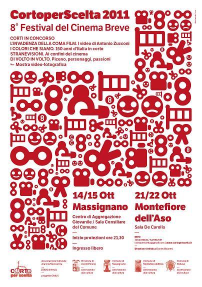 Alla ricerca di tutte quelle immagini in movimento che hanno la forza di essere brevi. Dal 14 al 22 ottobre 2011 a Massignano e Montefiore dell’Aso (Ascoli Piceno) si svolgerà l’8° edizione di CortoperScelta, il festival del cinema breve ideato dall’Associazione “Arancia Meccanica” di Massignano e dal direttore artistico Dante Albanesi. Queste le sezioni in programma: