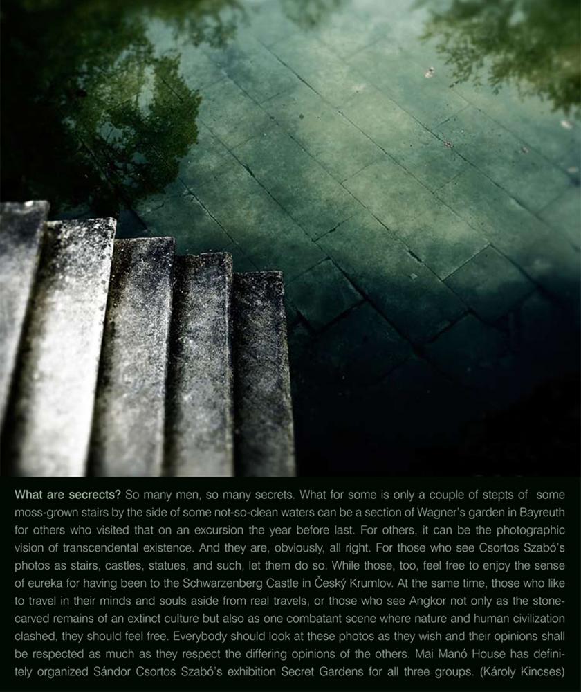 What are secrets? So many men, so many secrets. What for some is only a couple of steps of some moss-grown stairs by the side of some not-so-clean waters can be a section of Wagner's garden is Bayreuth for other who visited that on an excursion the year before last, For orthers, it can be a photographic vision of transcendental existence. And they are, obviously, all right.