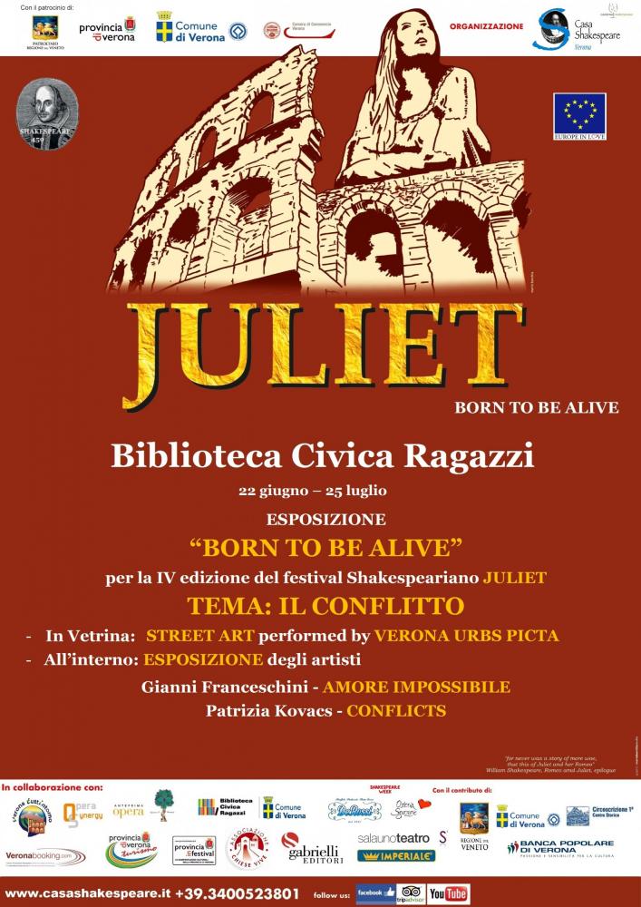 Partendo dal Romeo & Juliet e allargandosi ad altri riferimenti Shakespeiriani, il visitatore è accolto da proposte visive tra le quali quella appassionata e provocatoria di Patrizia Kovacs, che allarga il conflitto da Shakespeare ad altri testi, quale testimonial del luogo che ospita la mostra e della ricchezza di contenuti presenti,