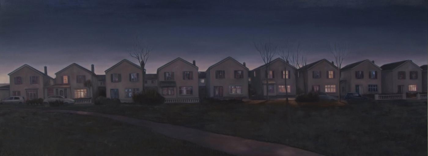 These paintings are from a series Suburbia, which portrays the Dublin I grew up in and aims to recreate the atmosphere of the uninspiring housing estates I remember.