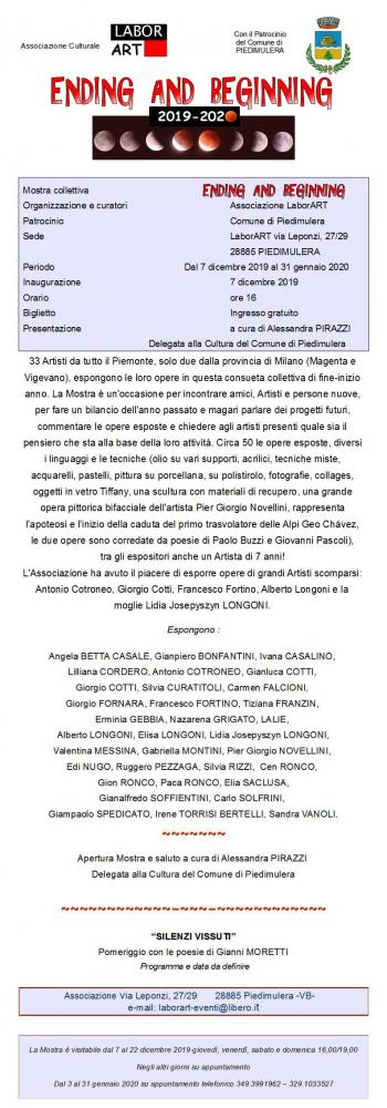 33 Artisti da tutto il Piemonte, solo due dalla provincia di Milano (Magenta e Vigevano), espongono le loro opere in questa consueta collettiva di fine-inizio anno. La Mostra è un'occasione per incontrare amici, Artisti e persone nuove, per fare un bilancio dell'anno passato e magari parlare dei progetti futuri, commentare le opere esposte e chiedere agli artisti presenti quale sia il pensiero che sta alla base della loro attività.