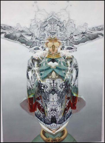 Se in Joshua Gagler si puo' riconoscere un invasivo nucleo percettivo, con un richiamo anche alle tavole di Rorschach che permette quasi di intravedere un interno movimento, quasi un'eterna mutazione che si evolve proprio al nostro sguardo portandoci in una dimensione parallela si veda ad esempio l'opera dal titolo "Flang Left". Mentre i lavori di Joseph Cohen sembrano quasi proferire una piu' immediata lettura, ( con quel uso del color lapislazzulo che crea ed infonde raffinatezza) quando invece in quella essenza minimale si racchiude uno spessore concettuale dato da quel togliere, smussare e dare in quel poco il tutto, si veda ad esempio la parte terminale del lavoro fatto di quel raffermo sgocciolare "Left Altar Painting" che ci richiama quasi alle candele votive.
