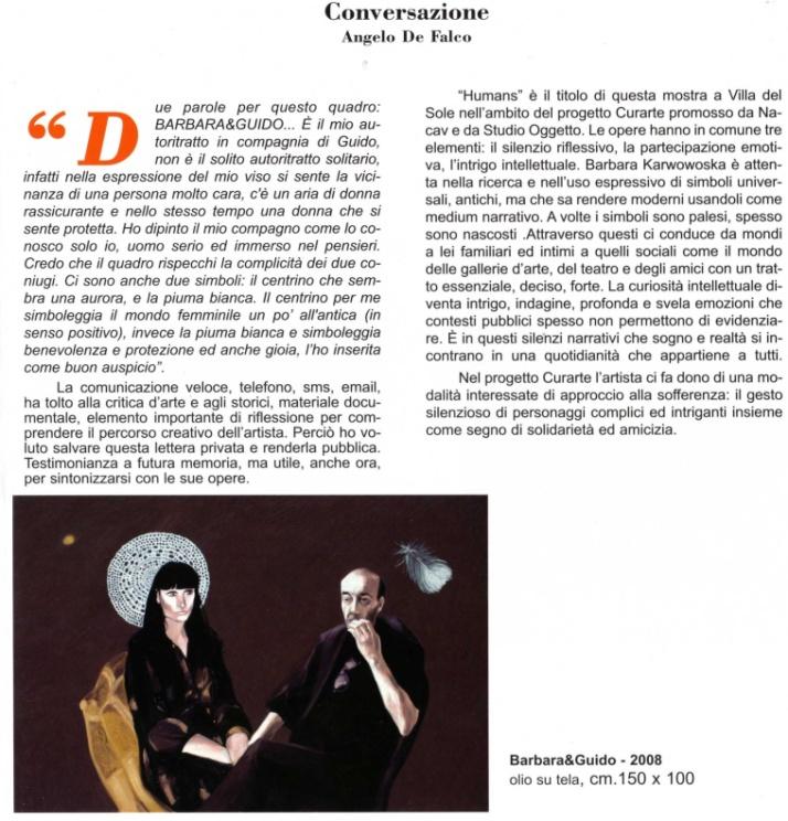 Carla Viparelli e Barbara Karwowska - l’una partenopea, l’altra originaria di Danzica ma di stanza a Napoli da oltre quindici anni - si cimentano, ciascuna secondo la propria cifra, con il mezzo pittorico; la ricerca estetica della fotografa sarda Anna Marceddu è rintracciabile nei numerosi scatti presentati a Villa Del Sole. Quest’ultima, come si evince dal titolo della mostra Modigliani: la vita per immagini, realizza grazie al Modigliani Institut Archives Légales di Roma e Parigi delle “foto-scritture” sulle tracce dell’artista e dei luoghi che caratterizzarono il suo percorso. Nella pittura figurativa di Barbara Karwowska, invece, sfila su sfondi monocromi un variegato “campionario di figure umane” racchiuso nell’esposizione intitolata Human. Carla Viparelli, dal canto suo, presenta nella mostra battezzata Arte_fatti tele dai nomi evocativi in cui, secondo gli schemi di un “concettualismo mediterraneo e surreale”, tutto sembra possibile.