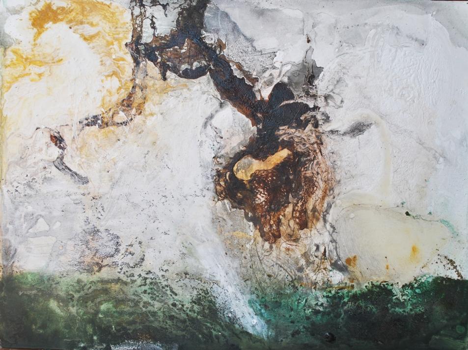 Le opere esposte al Museo del Presente sono dunque frutto di un sofisticato studio di RE sui materiali non convenzionali e sulle “alchimie” che si creano, spontanee o indotte, nelle sue opere, attraverso la particolare tecnica esecutiva basata sulla commistione di elementi e sull’accostamento di materiali in apparenza antitetici.