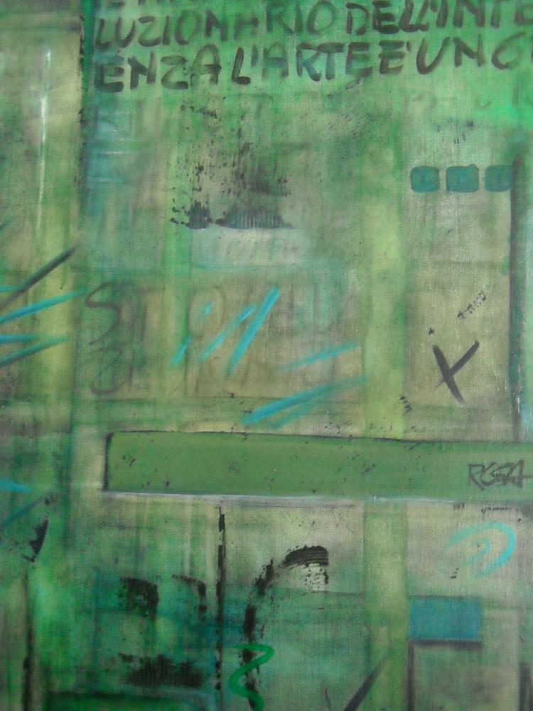 La scelta del titolo è dovuta alla prepotente presenza della scrittura nella maggior parte dei miei quadri, in cui esprimo pensieri, miei o di chiunque abbia lasciato una traccia profonda. Con il punto di domanda lancio sfide e messaggi, pongo interrogativi allo spettatore che diventa protagonista perché stimolato a reagire e a dare risposte.