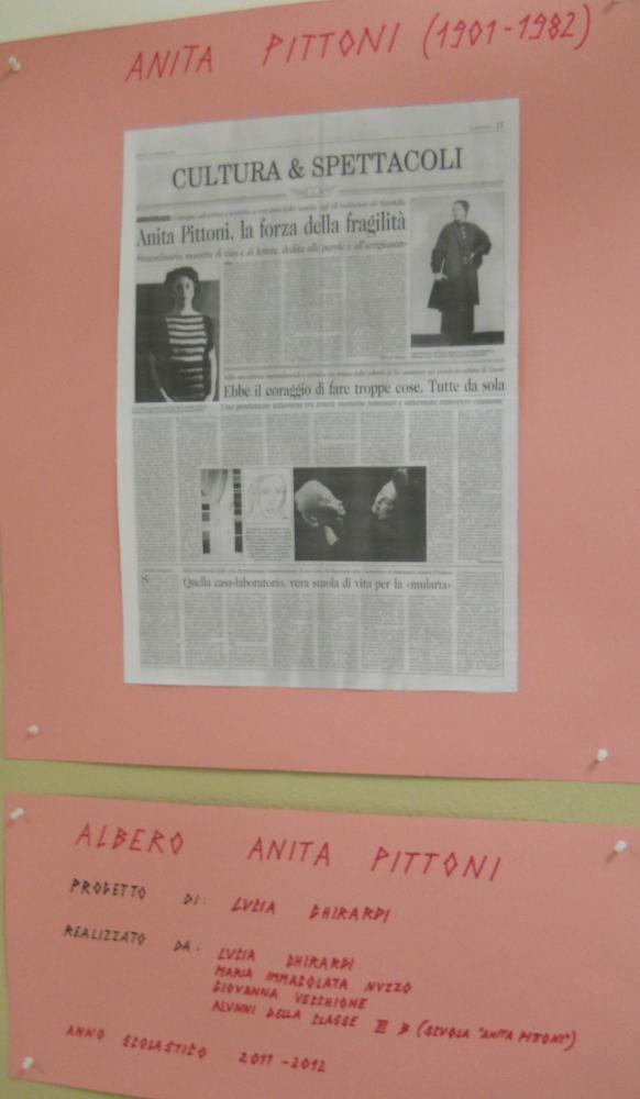 Ogni classe della scuola ha contribuito alla sua realizzazione ed io con i miei alunni e le mie colleghe di classe ho realizzato una installazione intitolata "L'Albero Anita Pittoni" che è incentrato sulle poesie prodotte da questa eclettica artista triestina, nata a Trieste nel 1901 e scomparsa nel 1982.