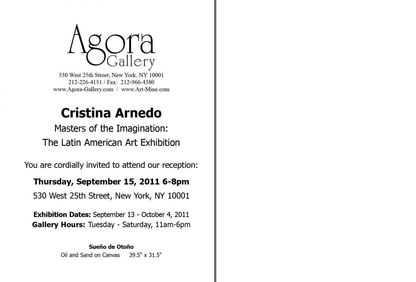 Mostre, Stati Uniti, New York City, 15 September 2011 AGORA GALLERY Reception: Thursday, September 15, 2011, 6-8 pm Exhibition Dates: September 13, 2011 - October 4, 2011 Gallery Hours: Tues-Sat 11-6 530 West 25th Street, Chelsea New York Inserito 14 anni fa 0 Mi piace Non piace più 0 Commenti 90 Visite Condividi Facebook Twitter Google + Commenti 0 Inserisci commento E' necessario effettuare il login o iscriversi per inserire il commento Login