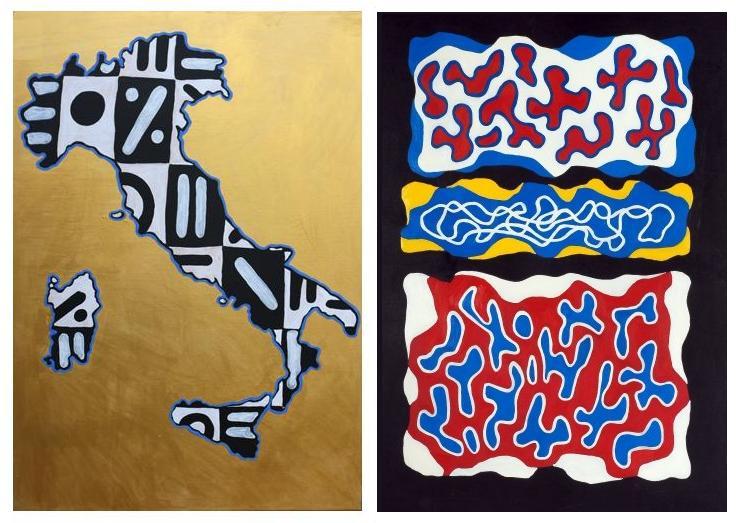 Introduce l'arte di Leonardo Santoli la poesia di un altro fiorentino, padre delle avanguardie del Novecento, dal Crepuscolarismo al Futurismo, Aldo Palazzeschi. La poesia è "Chi sono?". E la risposta che l'autore dà è la seguente: sono un pittore, che mette sempre una lente davanti al suo cuore per farlo vedere alla gente. E proprio guardando attraverso la sua lente, illuminiamo e dilatiamo quel pulviscolo che, seguendo un rewind inarrestabile, s'addensa continuamente in modi diversi, andando a formare segni (tratti alfabetici, interpunzioni, crittogrammi), simboli mitici (labirinti, atlanti, costellazioni) e forme, che spaziano dai segni arcaici agli emoticon telematici, dai colori soffiati sulle mani-foglie dell'arte rupestre ai colori al neon dei cartoon, dalle reti geometriche ordinanti il caos metropolitano alle lunari mappe celesti, dalle clave preistoriche alle automobili dal sapore Pop. Per cogliere l'originalità e la complessità della sua vasta produzione artistica, lungo un percorso che procede dalla fine degli anni Ottanta ad oggi, è doveroso un approccio volitivo, in cui far vibrare e sintetizzare parte delle Avanguardie del Novecento e dell'Arte contemporanea. Della sua variegata produzione saranno esposte soprattutto opere dedicate alle mappe geografiche, alla simbologia e alle costellazioni. Con il soggetto Italia (1991-2013) Sàntoli si inserisce in quella riflessione critica, che i più interessanti artisti italiani hanno svolto negli ultimi quarant'anni: Italia Cosa Nostra (1968-1971), Italia d'oro (1968-1975) e Italia all’asta (1990) di Luciano Fabro, Il Bel Paese (1994) di Maurizio Cattelan, Carta geografica (1997) di Mario Schifano, TV Selen (2010) di Marco Gerbi, Cristalli (2010) di Stefano Arienti; Il volto dell'Italia (2011) di Marco Lodola, L’Italia in croce (2011) di Gaetano Pesce, L’Italia Riciclata (2011) di Michelangelo Pistoletto. In queste opere Santoli rappresenta l’atmosfera incerta e sospesa del nostro paese: una penisola coperta di simboli, in cui fa scomparire i mari e fa emergere lettere alfabetiche distribuite caoticamente. In un display che coinvolge anche il tempo, oltre che lo spazio, con una successione di immagini e segni, l' Italia viene evocata attraverso figure di concetti astratti; caleidoscopio di una nazione negata, incerta, di cui restano solo nostalgici reperti. In "Simboli" del 1996 e in Arcaico del 2012 , l'artista rintraccia connessioni con il Casellario (1974) del neosurrealista e neodadaista Lucio Del Pezzo e riprende anche l'ispirazione dei segni e dei numeri di Ugo Nespolo in Semel in anno (2004). In tutte queste opere prevale una struttura a mensole, Wunderkammer, ovvero Camera delle meraviglie, dove il collezionista conserva raccolte di oggetti rari, straordinari per le loro caratteristiche intrinseche ed esteriori, mentre la delimitazione degli spazi a rete esprime la vocazione di dirimere il caos. Sopra scaffali sono sistemati triangoli, boomerang, cuori schiacciati, ruote, lettere, bastoni, rombi. É questo l'archivio, illimitato e periodico della Biblioteca di Jorge Luis Borges, archivio chiuso in stanze, dove piccole comunità legiferano secondo riferimenti apparentemente sconosciuti. I segni rimandano anche alla scrittura italica, greca o egizia:sono simboli tronchi, criptici, ermetici, spesso di difficile comprensione, assimilabili alla grafia onciale dell'alfabeto greco. I disegni sembrano invece di derivazione tribale (occhio, vortice, tattoo) dei gruppi etnici del west Africa. La sistemazione ordinata in visual box rinvia anche ai piccoli recinti dei cartigli egizi, dove si riportava il nome del defunto. Box/cartigli, quindi, in cui racchiudere per memorizzare energie di popoli antichi o addirittura primordiali. E, mentre l'occhio attraversa i due metri della tela Simboli e la percorre in una qualsiasi direzione, si riappropria di flussi di energia potente di civiltà lontane. Nello stesso periodo l'artista, nei dipinti della serie Costellazione, fa rivivere l'universo immaginativo dello Zodiaco di Dendera e del Disco di Festo. In particolare, in Costellazione - Coppia (1991-2013), il disco con i suoi fili di fibre naturali fa da fondale al rovesciamento del mito di Atlante, che non è più raffigurato, come nell'epica classica, schiacciato dal peso del mondo. Qui il semidio è sostituito da un uomo e una donna, entrambi eretti e di spalle, che insieme dominano il mondo. L'ambiguità della loro posizione fa dedurre un opposto destino, che, forse solo dopo un cammino circolare intorno al mondo, effettuato in solitudine, li porterà al temine a confrontarsi face to face. In altri dipinti l'artista riproduce con scale diverse germinazioni di forme arcaiche o telematiche su fondi rossi, blu, grigio-giallo, terra-senape. L'alfabeto, costituito da semi, bastoni, aste, lettere, emoticon, riassorbe energie dal mondo tribale e onirico, mentre i flussi seminali riducono all'elementarità arcaica anche la geometria delle stelle? questa un' interpretazione soggettiva, propria ed esclusiva dell'artista nel suo incontro con codici complessi, scoperti nella sua ricerca ed esaltati in seguito nelle forme, secondo l'ordine dell'astrazione e del simbolismo. Alcune figure, come gli scudi, provengono dal primitivismo, altre, come il reticolato di una pulsanteria, dalla galassia tecnologica. L'artista galleggia di continuo alternando, nella rappresentazione figurativa, una terrosità indicante il passato, (la forza della terra madre o il reticolato delle stelle), e il futuro, ipersegnico, riluttante, oscurato ed inquietante. Nei quadri realizzati nei primi anni Novanta sul filone della tecnica dell'arte rupestre incontriamo quel gioco di luci ed ombre sulle foglie e sui petali di fiore, che fanno rivivere la magia e la suggestione delle pitture rupestri delle Grotte di El Castillo di Altamira. In questi dipinti i soggetti sono diversi: un' Italia (10) ritagliata in nero, guerrieri-sfinge confusi in atmosfere floreali, lumino