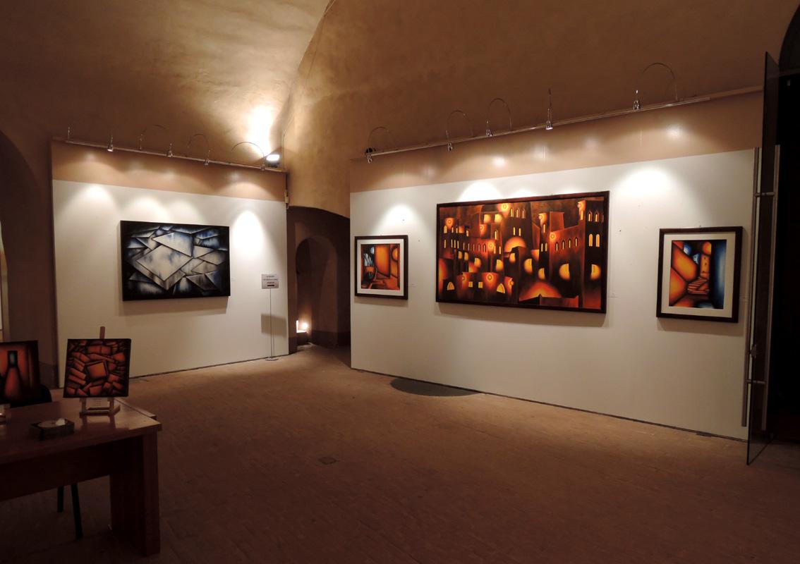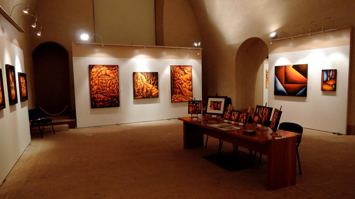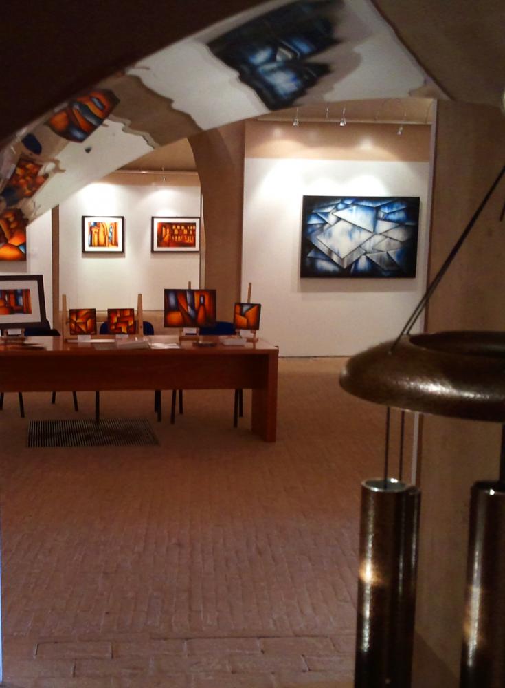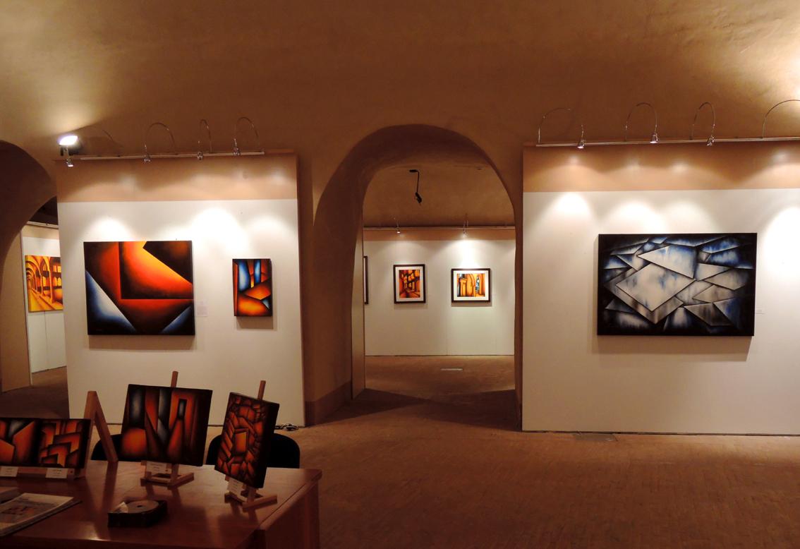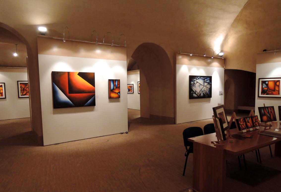 Ciò conferisce, alle sue ultime creazioni, una connotazione puramente astratta. Non è solo gioco virtuale, di sincronia ed equilibri di forme nello spazio, bensì una ricerca che viene dall’anima e nasce dal desiderio di trasmettere un sentimento di purezza attraverso il colore. Sono altresì convinto che l’Artista sia tutt’ora in divenire ed aspiri ad una totale libertà nello spazio rappresentativo, riducendo ulteriormente la geometria delle forme. Presumo che i suoi spazi diverranno sempre più ampi ed integri, gli equilibri sempre più distesi. È bello anche notare, come la sua tavolozza si arricchisce, riscoprendo gli azzurri e i blu. Colori che ampliano gli spazi.