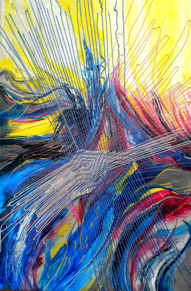 A fondamento delle sue ricche composizioni aniconiche paragonabili talora agli arazzi rinascimentali vi sono alcuni fondamentali neumi linguistici e strutturali quali la materia, il colore, la trama, e quindi i segni frammentati o in armoniosa gerarchia, il movimento: tutte prerogative della modernità sperimentale. Anziché arrendersi al nuovo modello di civiltà postindustriale l’artista siciliana, in una evidente espansione spaziale, per cui ogni singolo manufatto non è che parcellazione di un universo infinito di fantasmagorica tessitura, vuol rendere apologetica la sua volontà di rapportarsi alle radici, intese anche come valori estetici indispensabili perché l’opera diventi per il fruitore nutrimento dello spirito. Parlavo di espansione spaziale, ma non cristallizzata, bensì in progress, ovvero in perenne esecuzione proprio in ossequio alla memoria della fedele Penelope.