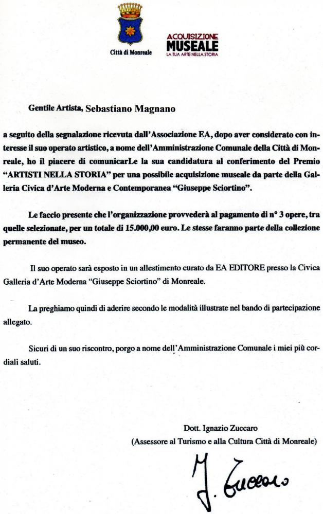 Mostre, Palermo, Monreale, 03 February 2016 Sebastiano Magnano Artista candidato dall'Assessore al Turismo e alla Cultura Città di Monreale Inserito 9 anni fa 3 Mi piace Non piace più 1 Commento 84 Visite Condividi Facebook Twitter Google + Commenti 1 9 anni fa Officina del Riciclo Artista Molto piacere e in bocca al lupo!!! Inserisci commento E' necessario effettuare il login o iscriversi per inserire il commento Login