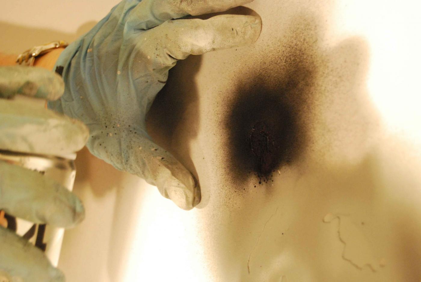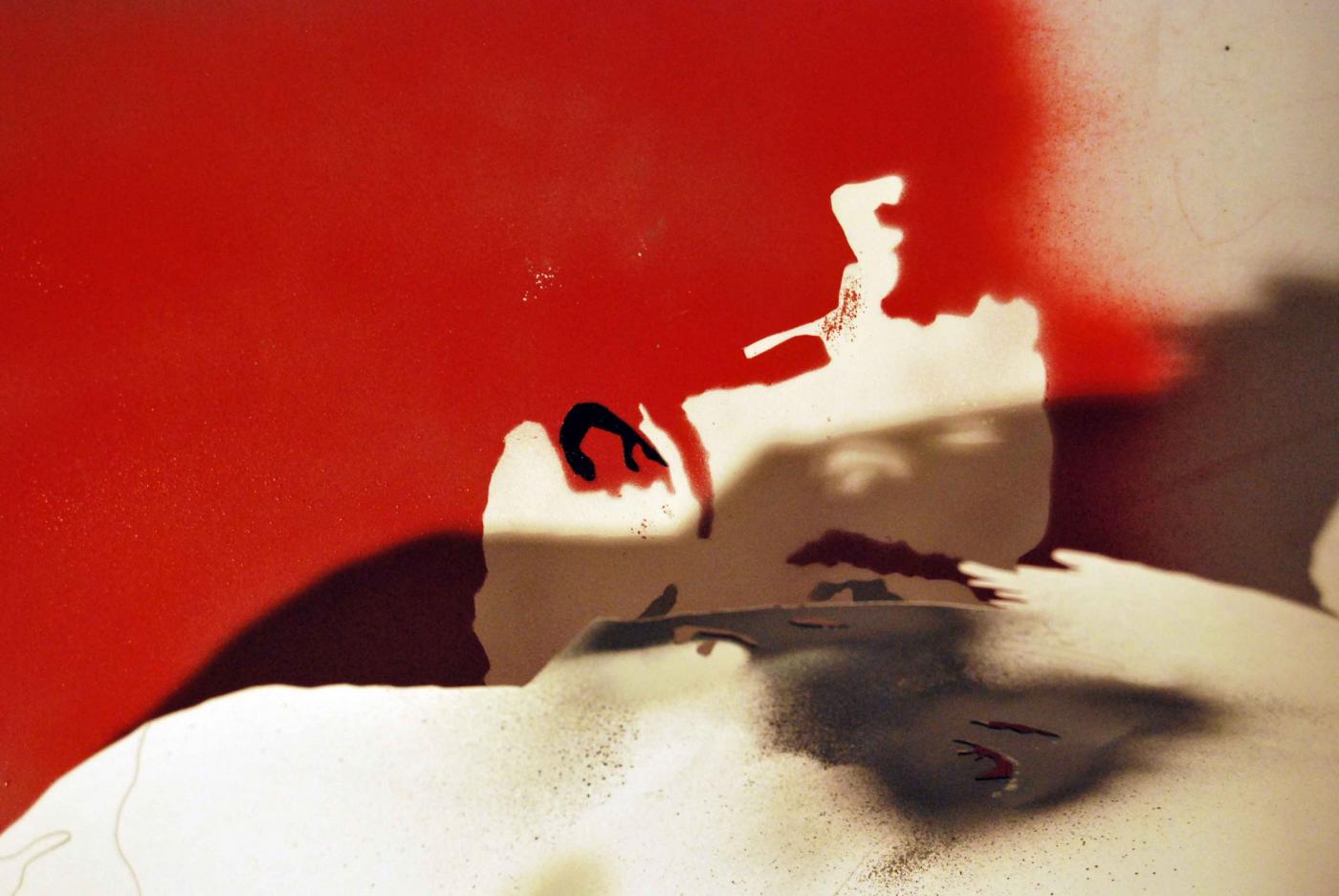 La creazione dell’opera si articola in più fasi: l’immagine iniziale viene scomposta digitalmente in un collage di elementi, in chiazze di colori primari che serviranno per la realizzare di stencil, ritagliati a mano su cartoncino. Ogni sagoma è associata ad un preciso colore e ad un ordine progressivo di utilizzo. L’artista procede nello spruzzare con l’aerografo la vernice acrilica ad acqua o sintetica nelle zone ritagliate dalle mascherine stencil componendo nella secessione di stratificazioni di colore l’opera.