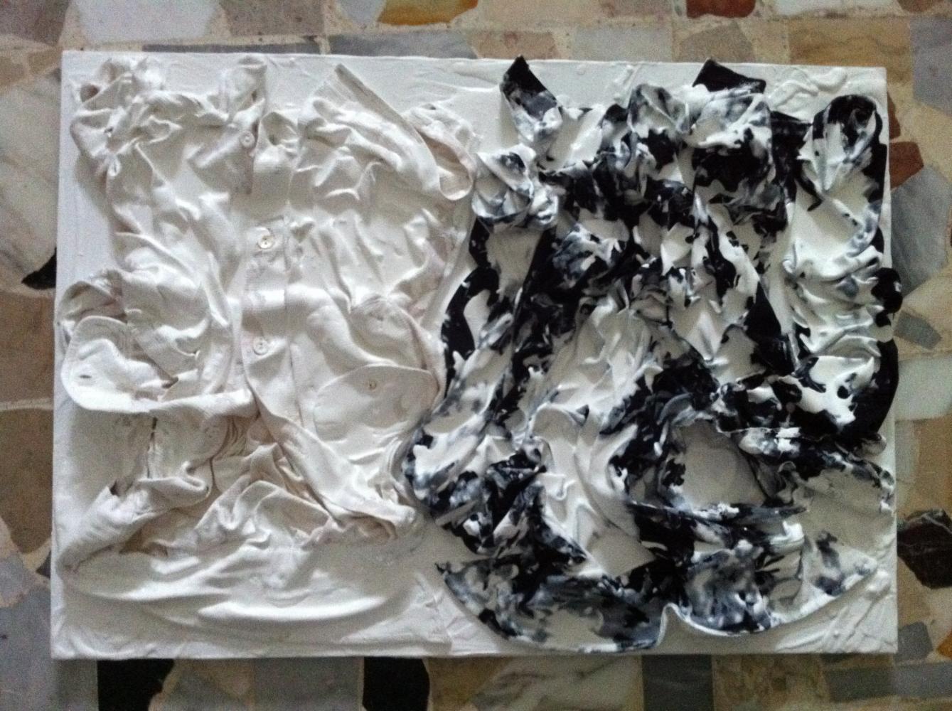 La fase attuale mi vede impegnata in una cosa ancora più intuitiva derivante dalla conoscenza dei materiali e dalla sperimentazione di nuove tecniche quali, ad esempio, l’uso del cartone, del legno e del cotone. L’elemento dilaniato, sfregiato nella sua essenza, non smette di esistere, al contrario, grazie a questo moto veemente si rigenera formalmente, innalzato a nuovo prototipo artistico e di pensiero. Ad esempio, il fuoco non distrugge, anzi fa assumere alla materia nuove forme e nuovi colori".
