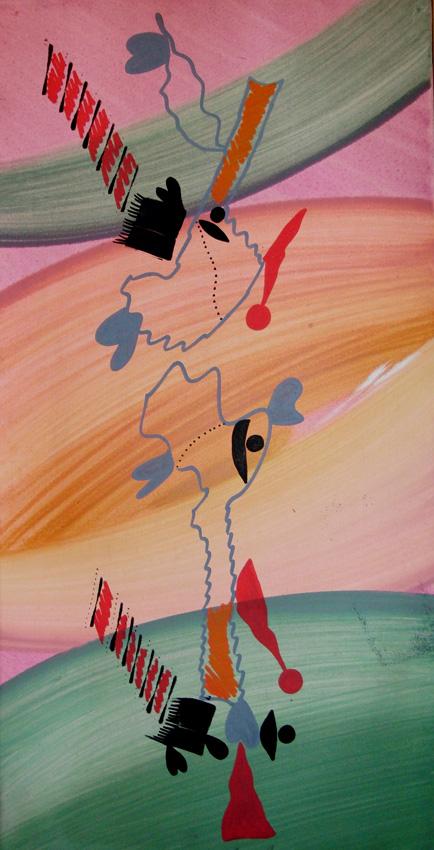 I quadri qui presentati, oramai storici all’interno della storia dell’arte del secondo novecento, vivono di grandi suggestioni visionarie, di stesure cromatiche ardite ed irriverenti, di partecipazione colta e di poetica naturalistica, di gestualità esplosiva e di segni di calligrafia automatica.