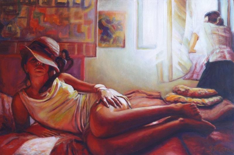 La produzione di Silvia Garzena si anima di volti, corpi, cui il colore dà vita ed espressione intense. L’atmosfera creata sulla tela esprime ogni venatura emotiva dell’uomo, calato nella sua dimensione più intima e domestica, da cui però l’artista fa trapelare la costante traccia di un’irrequietezza vibrante.