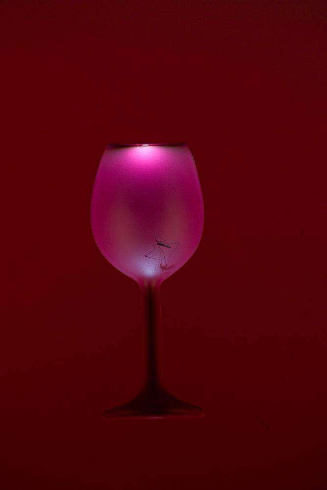 monocromo o interagendo delicatamente con oggetti di uso quotidiano riprodotti perfettamente in gesso: una zanzara nel fondo del bicchiere di vino, rinnova la sua silenziosa presenza in sala durante il vernissage.
