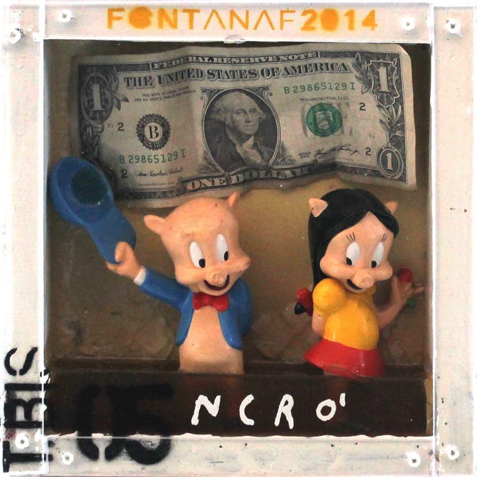 Salentino di nascita, Fontana fa del gioco il fulcro di tutto il suo lavoro e in questa mostra, giocando giocando, mette in atto, in performance, un’idea geniale che promette di risolvere il grande dissidio interiore che dilania l’artista tutte le volte che con la vendita si vede costretto a cedere la paternità delle sue opere.