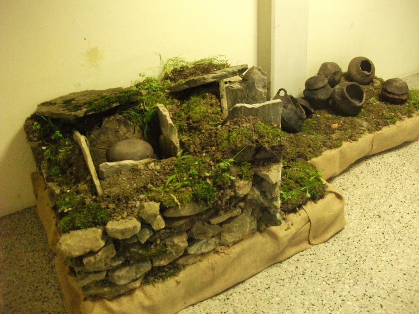 Con questa installazione si è voluto riprodurre in scala naturale parte della necropoli con relative tombe a pozzetto e urne cinerarie complete di corredo funerario. Questo progetto ha voluto valorizzare e far conoscere agli alunni dell’Istituto le origini della nostra storia. Personalmente ringrazio il Dirigente Scolastico dell’Istituto Comprensivo che ha permesso la realizzazione di questo importante progetto, in particolare la collega di Arte e immagine (responsabile del progetto) e soprattutto gli alunni che con grande impegno e dedizione hanno, con il loro lavoro, contribuito alla realizzazione dell’installazione.