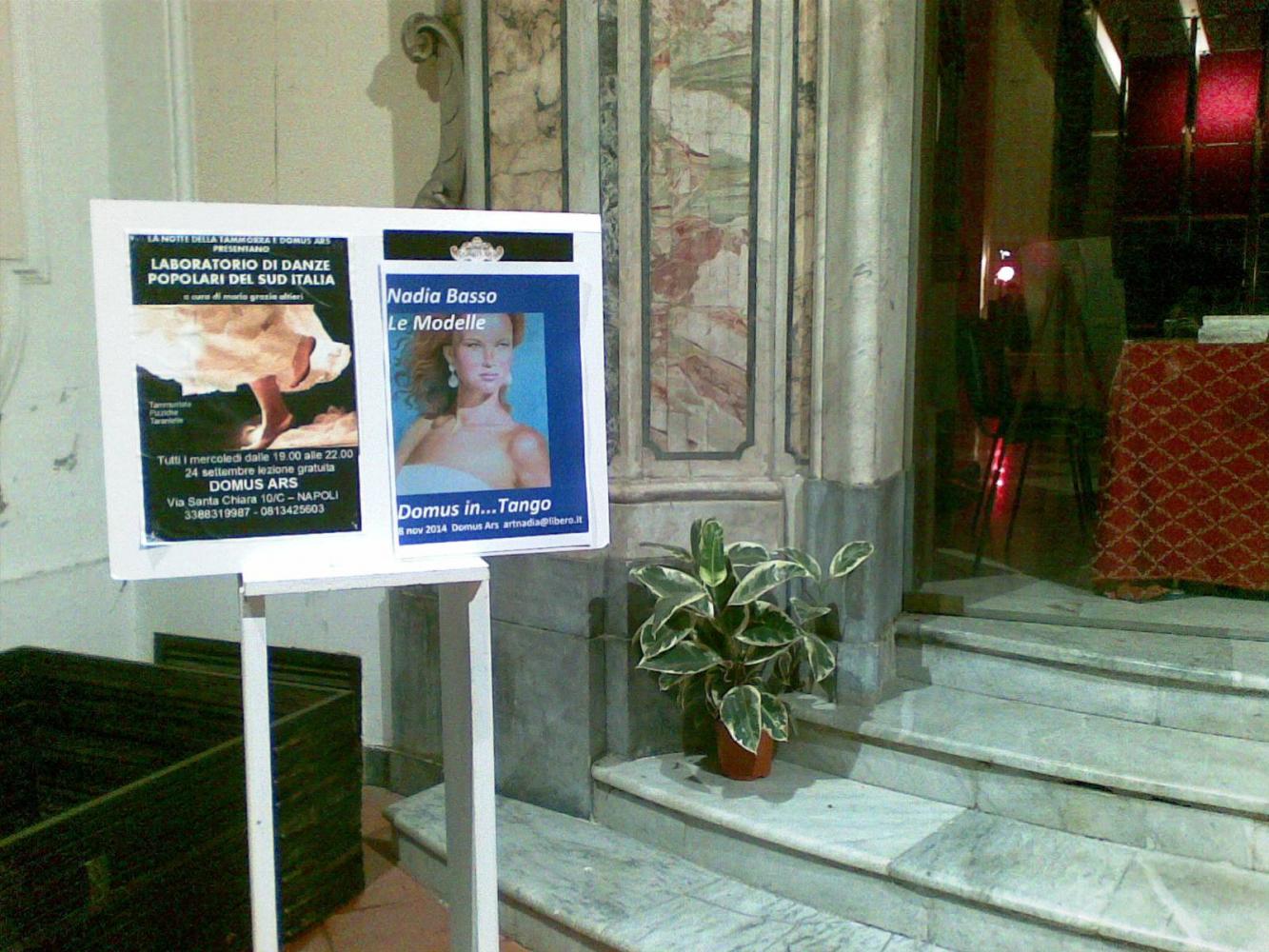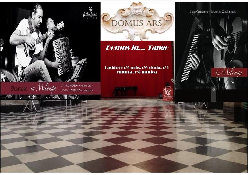 Dall’incontro del centro culturale DOMUS ARS ed tango argentino, nasce il progetto DOMUS in… Tango. L’idea è quella di proporre una milonga giovane e dinamica arricchita dal contributo e dalla partecipazione di tanti artisti e musicisti del mondo del tango. La location è di quelle più suggestive in assoluto, la straordinaria Chiesa di San Francesco delle Monache situata nel centro storico della bella Napoli.