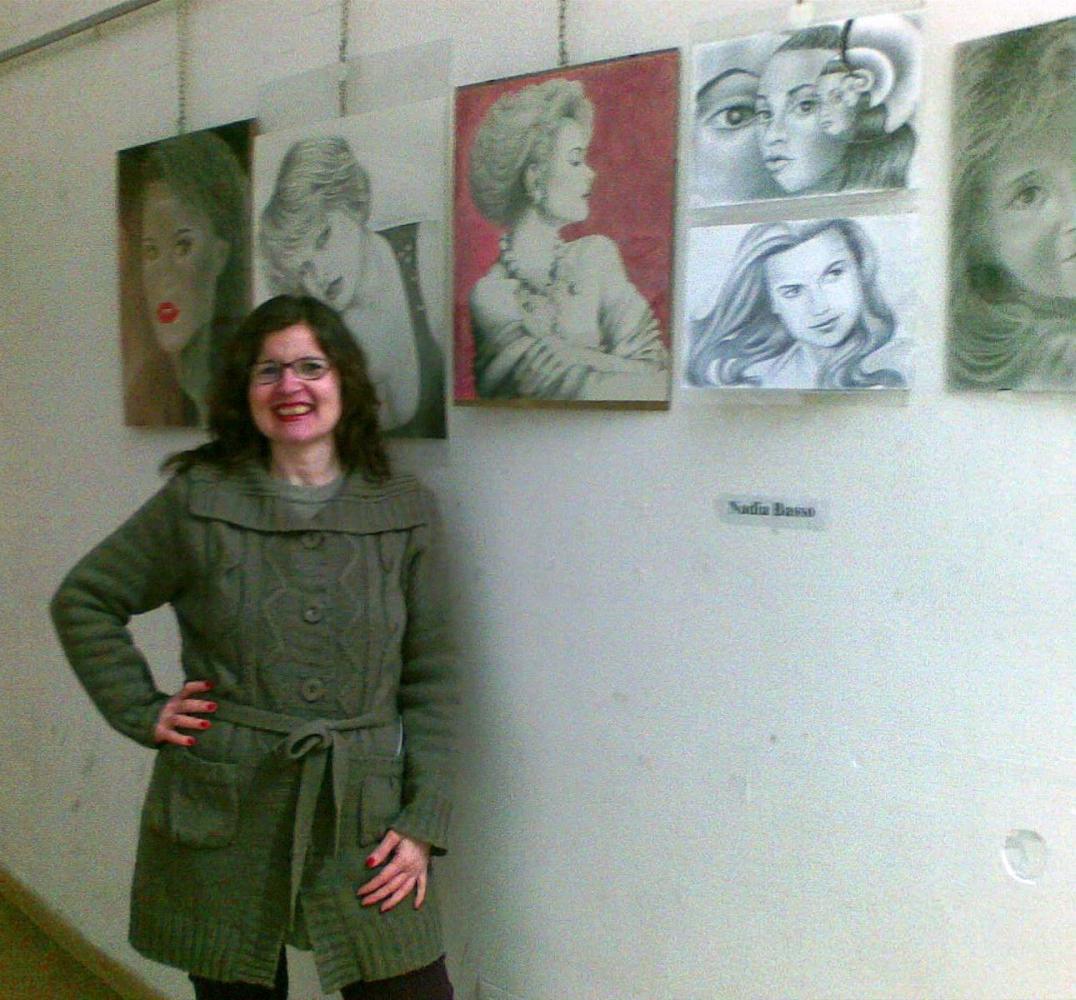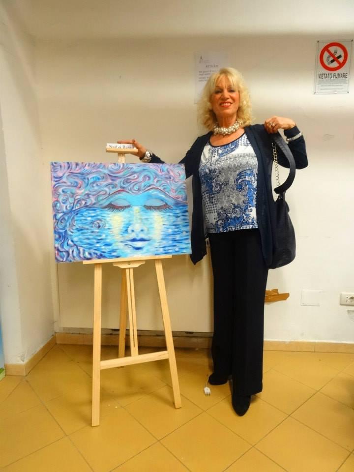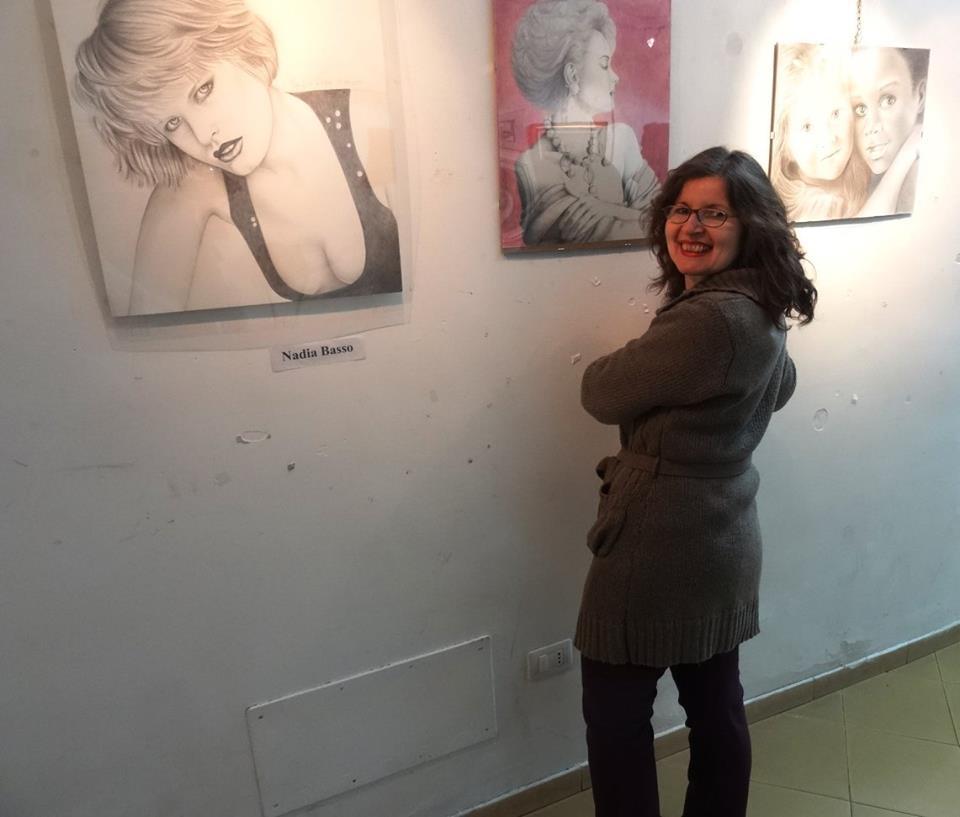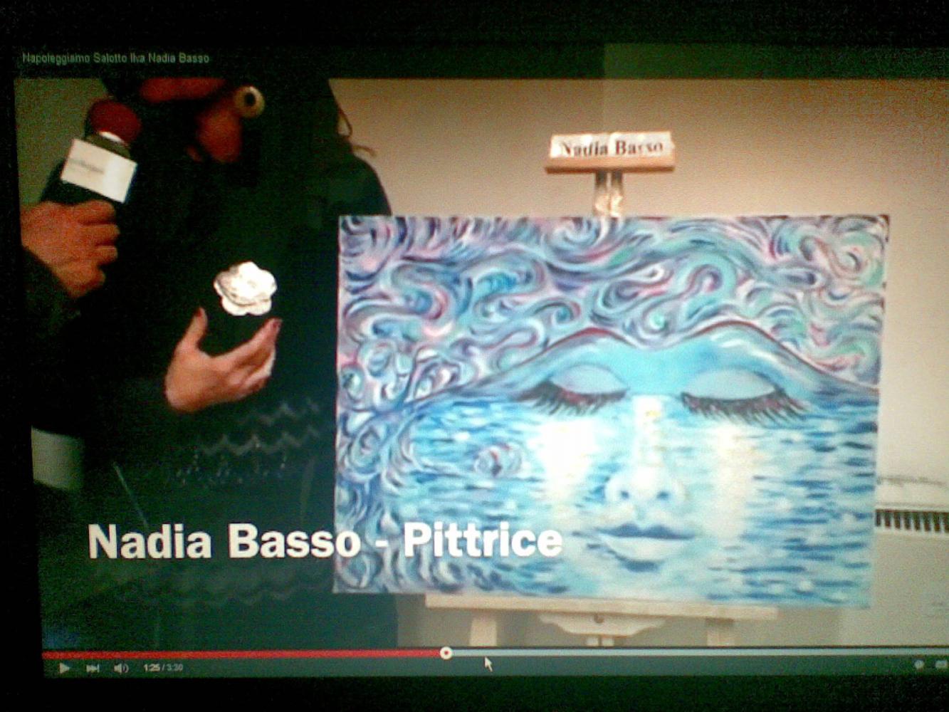 Tanti, tantissimi flash ad immortalare ogni momento del pomeriggio trascorso tra quadri, manufatti, poesie, musica e racconti, in un clima rilassato, giocoso e familiare, dove ciascuno si è sentito libero di esprimere il suo punto di vista sulle donne. Numerosi i dipinti esposti nella galleria, dove si è svolta la prima parte del “salotto”; tra gli espositori: le sorelle Viscione (Valeria e Sara) e Nadia Basso, che ci ha presentato la sua opera dedicata al Vesuvio. Nel dipinto, il “gigante addormentato” assume le sembianze di una donna assopita sulle calme onde del mare, ma allo stesso tempo, pronta a risvegliarsi con tutta l’energia delle sue fiamme. Ascoltiamo a tal proposito le parole della pittrice: