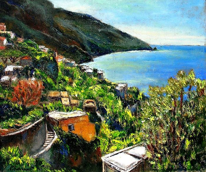 La pittura figurativa sarà, infine, magistralmente interpretata dai paesaggi mediterranei di Pino Romanò e dalla notevole espressività dei volti femminili contenuta nelle opere di Monica Bertoli.