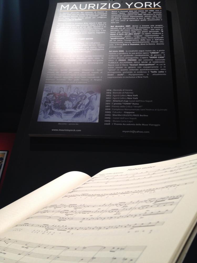La presentazione dell’opera pittorica realizzata dall’Artista Maurizio Yorck, illustrata dal Critico d’Arte Delia Cavallin e le immagini del fotografo Giorgio Tagliacarne. Il filo conduttore è la musica, immaginata appunto perché rappresentata per immagini. La musica è quella Sacra, di Giovanni Battista Pergolesi, ascolta, vissuta, vista al Duomo di Orvieto, durante il concerto della Chamber Orchestra L’Arco Magico diretta dal Maestro Antonio Puccio.