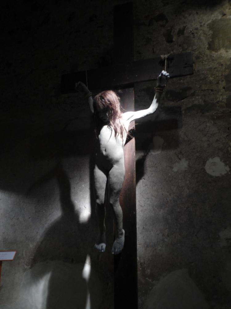 Le tre opere sono “Innocence”, “Capra!” e “Testiculos qui non habet Papa esse non posset”, tutte realizzate in vetroresina, che veicolano un messaggio forte, deciso e attuale, un messaggio di accusa contro ciò che l’uomo può fare oppure è. Dalla violenza sui bambini attraverso un corpo di bambina crocifissa, all’ignoranza dell’umanità rappresentata dal busto di un uomo con la testa di capra. Infine la figura femminile in abito papale, senza volto, un chiaro esempio di impossibilità nel realizzasi, come suggerito dal titolo.