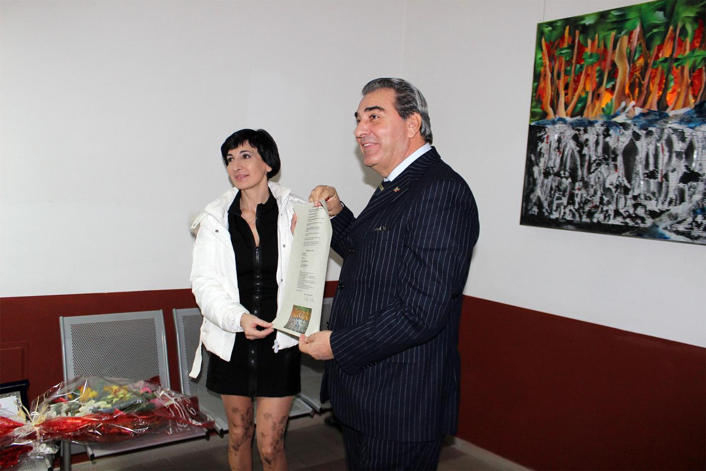 L’arte si sa, non segue un percorso logico-verbale, essa ha un linguaggio proprio, ha questa capacità di semplificare il mondo, di rendere dei concetti in modo sintetico e simbolico. Ecco nel caso in questione, l’opera Percorsi di Energia, di Antonella Pagnotta, accentua l’importanza di un eroe, sviluppandolo attraverso un’iconologia rinnovata che non presta certo il fianco ad una celebrazione limitantesi alla finzione pubblicitaria, speculativamente fine a se stessa; ma è esattamente la celebrazione, attraverso ciò che il vigile del fuoco significa come lavoro, di un corpo che si dis-pone alla società.