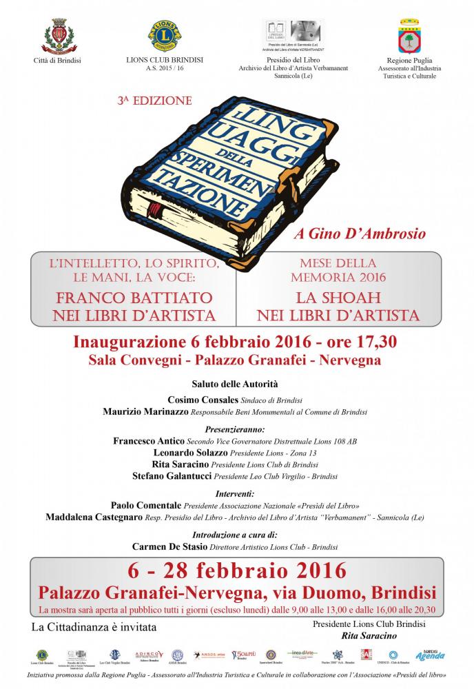 Mese della Memoria 2016 - La Shoah nei Libri d'Artista - Franco Battiato nei Libri d’Artista