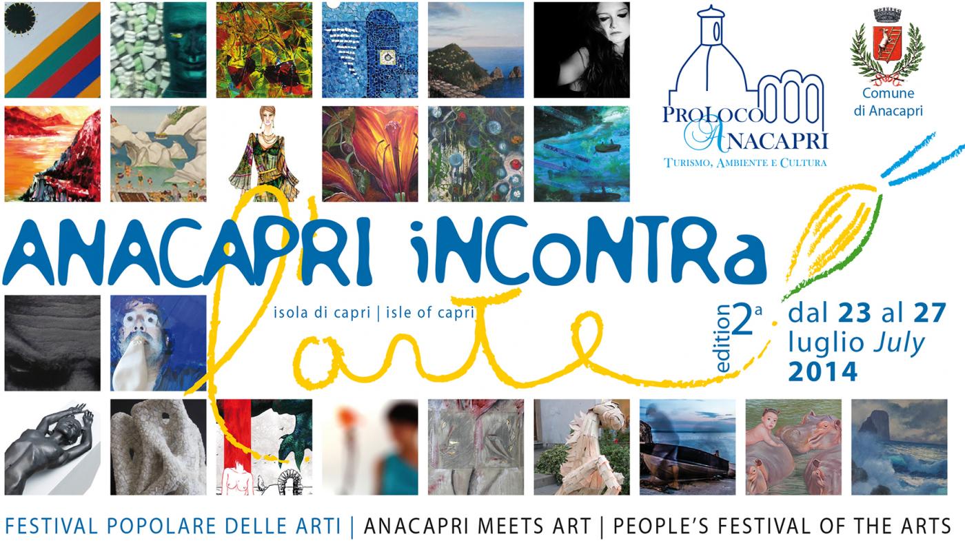 Sono aperte le iscrizioni per la seconda edizione di Anacapri incontra l'arte, festival popolare delle arti che si terrà ad Anacapri dal 23 al 27 luglio 2014, sull'isola di Capri. Cinque giorni di esposizione, lavoro, interazione e contatti, che trasformeranno le piazze e i vicoletti del centro storico in un'unica grande fiera dell’arte all'insegna della creatività e del talento, in un clima conviviale di reciproco arricchimento. «Con questa manifestazione -spiegano gli organizzatori- si intende valorizzare e promuovere l'arte nei suoi molteplici linguaggi con una vera e propria mostra all'aperto. Potranno partecipare artisti di ogni nazione, sesso e età. L'orario flessibile permetterà agli espositori di esplorare l'isola, fonte di ispirazione e laboratorio di idee». Il tema è libero, i candidati potranno iscriversi alle sezioni di pittura, fotografia, grafica, illustrazione, fumetto, ceramica e moda. Durante i giorni della kermesse si svolgeranno laboratori creativi, stage e spettacoli che abbracceranno le diverse forme d’arte, scrittura, teatro, musica, danza e fumetto. Per la prima volta verrà presentato un workshop dedicato al raggiungimento del benessere personale attraverso l’arte e il potenziamento della creatività, dedicato agli espositori.
