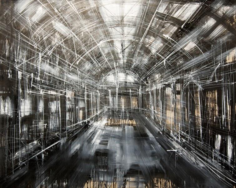 “Percezione # Paesaggio” è il titolo del progetto, che raccoglie una trentina di opere su tela e su carta, molte delle quali di grandi dimensioni. Protagonista, la città, che a partire dal disegno diventa spazio tridimensionale, architettonico e prospettico. Segni veloci e grovigli di linee che modificano la tradizionale percezione di paesaggi, palazzi e strade.