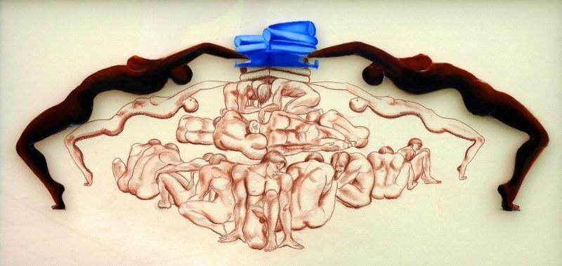 Come spiega, infatti, Giuseppe Berti, «Simona sente l’urgenza di oltrepassare il chiuso perimetro della tela per dilatare il proprio racconto su un altro supporto, una sottile lastra trasparente di plexiglas applicata sopra la superficie del quadro. E su questo altro medium […], ecco affiorare i fantasmi dell’inconscio, la traccia recente di ferite e paure; grandi occhi dilatati, frammenti di corpi, maschere beffarde, simulacri totemici… simboli, appunto, di un Io diviso, di un Soggetto, direbbe la psicanalisi, spossessato della sua realtà di Soggetto. Che aspira, però, a liberarsi da quei vincoli che limitano l’autenticità e la forza dell’Essere; e che gli impediscono di guardare in alto, oltre i confini del nostro piccolo cielo».