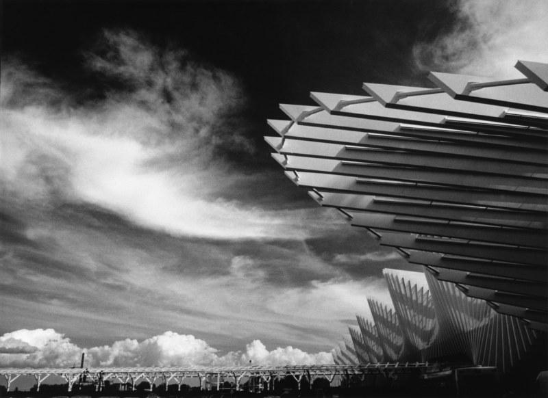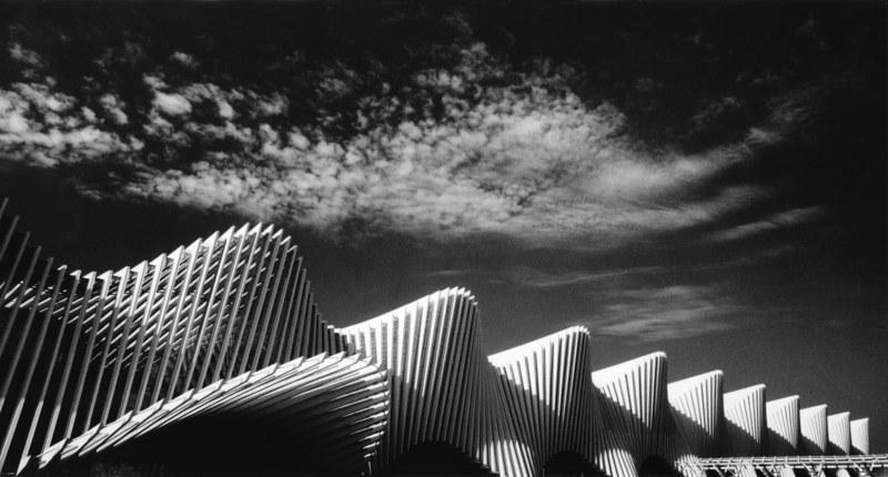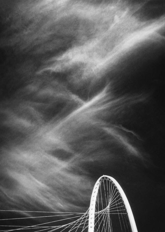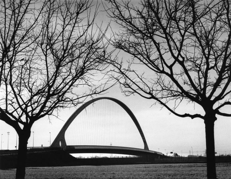 L’esposizione è accompagnata dal libro “Bonjour, Monsieur Calatrava” (corsiero editore, Reggio Emilia, 2014), con testo del curatore, Sandro Parmiggiani, e testimonianze di due protagonisti dell’architettura internazionale, Santiago Calatrava e Mario Botta. In mostra, quarantadue fotografie in bianco e nero che catturano le linee e i volumi dei tre ponti di Calatrava e della Stazione Mediopadana che ormai caratterizzano l’area nord della città. Una ricognizione appassionata, avviata da Farri nel 2006, quando i ponti erano in fase avanzata di costruzione, ed ultimata nel 2014, che ci restituisce la visione d’insieme, e i dettagli segreti, delle opere, e la loro interazione con lo spazio, segnato dalla presenza ineludibile degli alberi sulla terra e delle nuvole nel cielo.