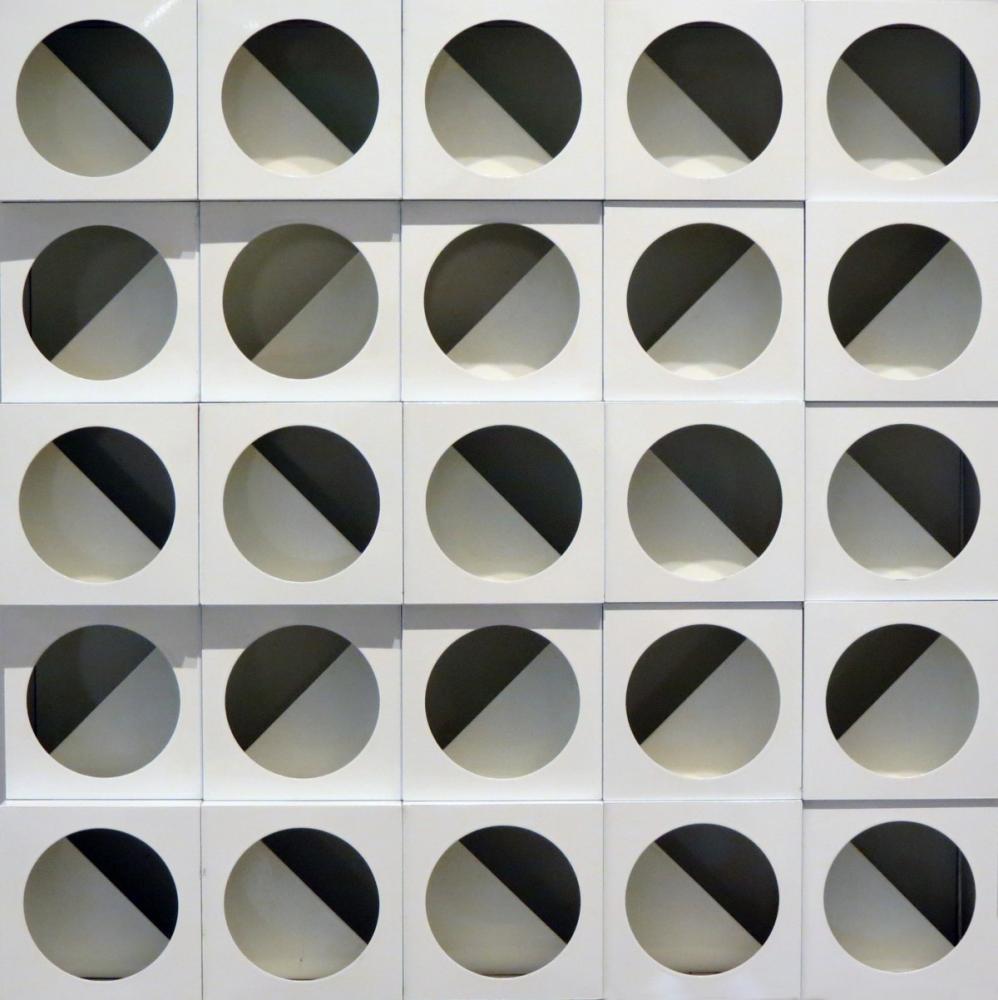 In mostra una Struttura Modulare bianca di Paolo Scheggi del 1969 in cui l’artista ha rinunciato all’ornamentazione e ad ogni elemento superfluo al fine di ottenere la chiarezza formale trasformando l’opera, portandola oltre la pittura e facendola diventare, in un processo di trasformazione - creato dall’artista e completato dallo spettatore - un oggetto.