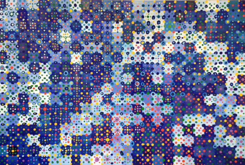 Pino Pinelli (Catania, 1938) lavora su moduli geometrici e colori primari, alla superficie e al vibrato dei quali mostra molta attenzione e li combina insieme per formare un nuovo lessico. I suoi moduli monocromi sono simboli del concetto stesso di pittura e rientrano nella corrente della “Pittura analitica”.
