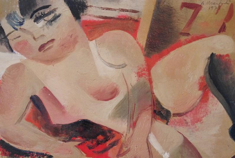Erotismo e ironia, malinconia e disincanto, scomposizione e profondità emergono da tutte le opere selezionate dalla Galleria de’ Bonis, in un clima parigino anni ’30 che si ritrova sia nei soggetti femminili, con le loro atmosfere di bordelli e can-can, sia nei paesaggi, con quei tetti e comignoli da Ville Lumière e i tavolini da bistrot.