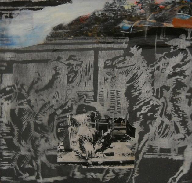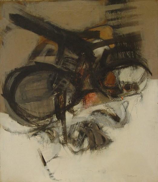 La sezione della mostra allestita in galleria comprende dipinti su tela riferibili agli anni ’60 e ’70, “Gli anni della passione”, un periodo fervido e fecondo di idee rivoluzionarie, di cambiamenti sociali, di lotte che hanno notevolmente influenzato il mondo artistico e culturale. Opere che raccontano la sofferenza, il non riconoscersi in una realtà stretta e bugiarda, la continua ricerca di giustizia di un artista colto e sensibile. Un costante rimando alla mitologia, ad eroi parafrasati e smitizzati, figure moderne che rivivono in un mondo antico, idilliaco, popolato da fiere e personalità meschine, dittatori del mondo contemporaneo.