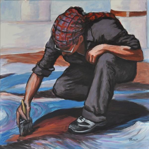 L’esposizione, che sarà inaugurata sabato 6 maggio alle ore 18.00, trae il titolo – “Ground” – dalla recente produzione pittorica dell’artista, dedicata alle figure dei madonnari, intenti a dipingere a terra (ground), nel momento in cui sono essi stessi ritratti.