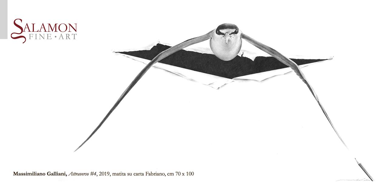 Le origini della galleria, da sempre impegnata a sostenere artisti che usino la carta come principale supporto, la portano ad esordire nel 2020 con la mostra dedicata al giovane Massimiliano Galliani, disegnatore, oltre che regista, che esporrà una selezione di disegni di medio e ampio formato, uniti dal filo rosso dell’idea dell’attraverso. “Attraverso” uno squarcio dove ombre e realtà modulano l’idea del passaggio dal vero all’immaginario, costruito sulla vincente idea della rappresentazione della carta come sipario dell’intera messa in scena.