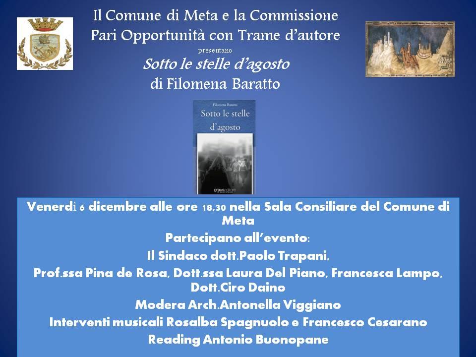 Mostre, Napoli, 06 December 2013 Presentazione libro "Sotto le Stelle D'Agosto di Filomena Baratto Inserito 12 anni fa 0 Mi piace Non piace più 0 Commenti 26 Visite Condividi Facebook Twitter Google + Commenti 0 Inserisci commento E' necessario effettuare il login o iscriversi per inserire il commento Login